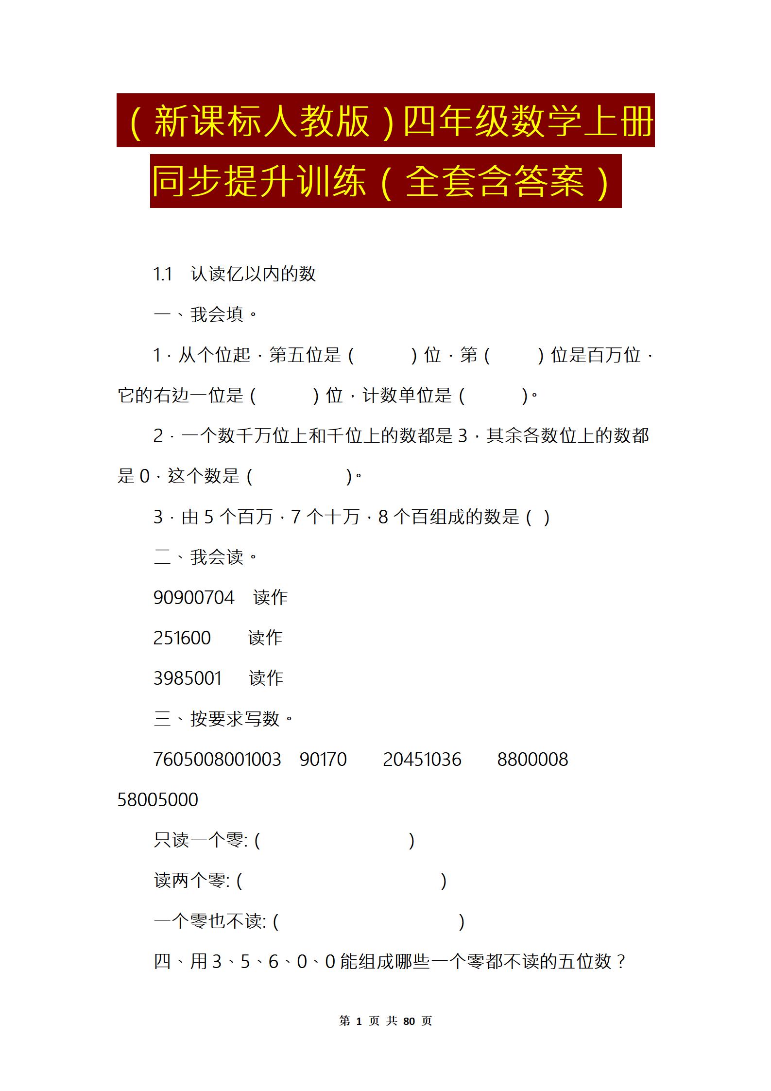 四年级数学上册人教版一遍过一课一练,同步教材,总结全面,暑假预习必备温馨提示拉至文末即可查看资料下载方式温馨提;微课视频第一课时第二课时电子课本图文讲解同步练习参考答案教 3在数学活动和解决问题的过程中,进一步感受数学与生活的联系。
