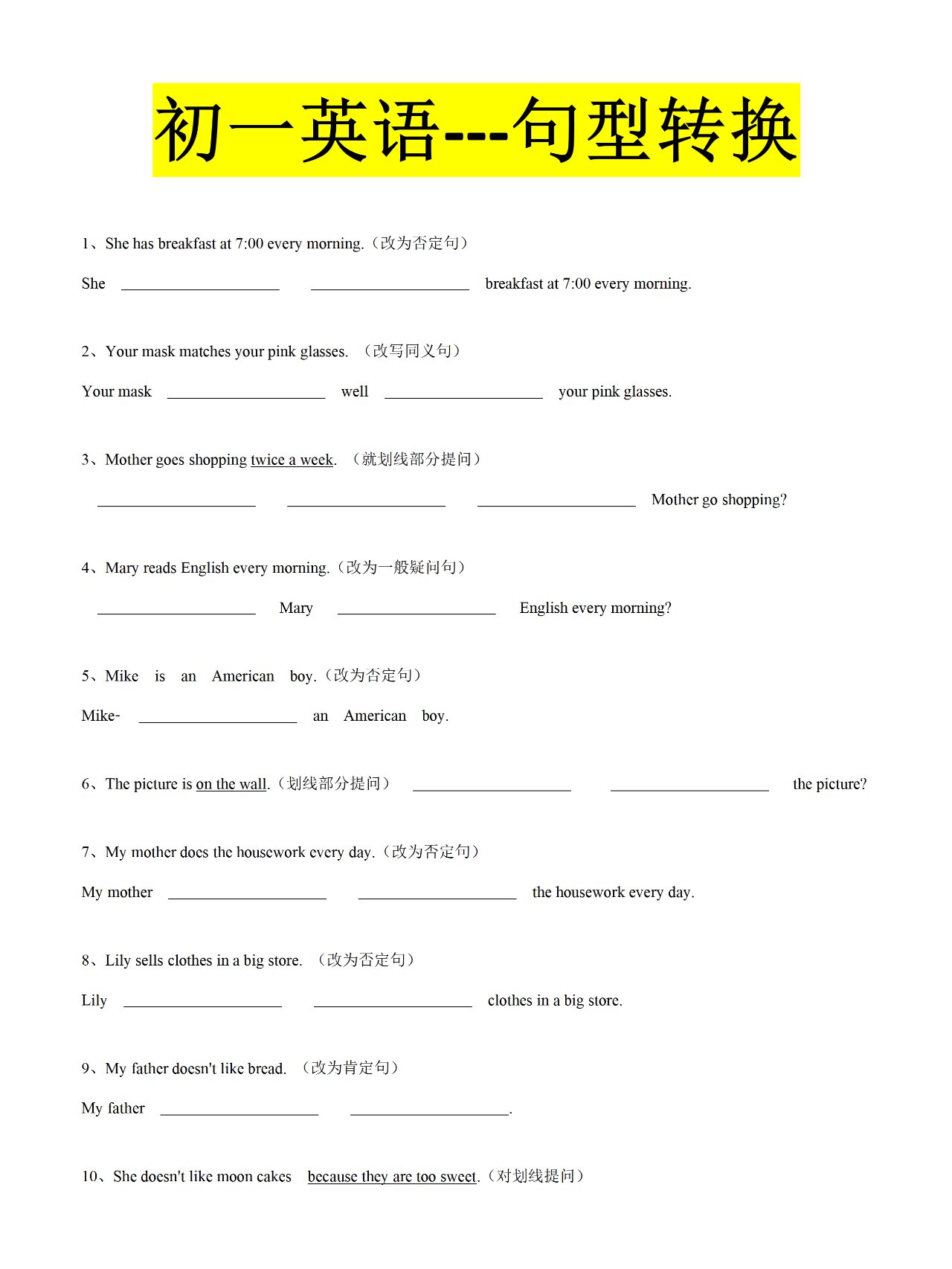1、今天老师为大家分享小升初英语专题句型转换专项练习!学习贵在积累与应用,非一日之功,望大家能沉心学习,坚持不懈英语句型。