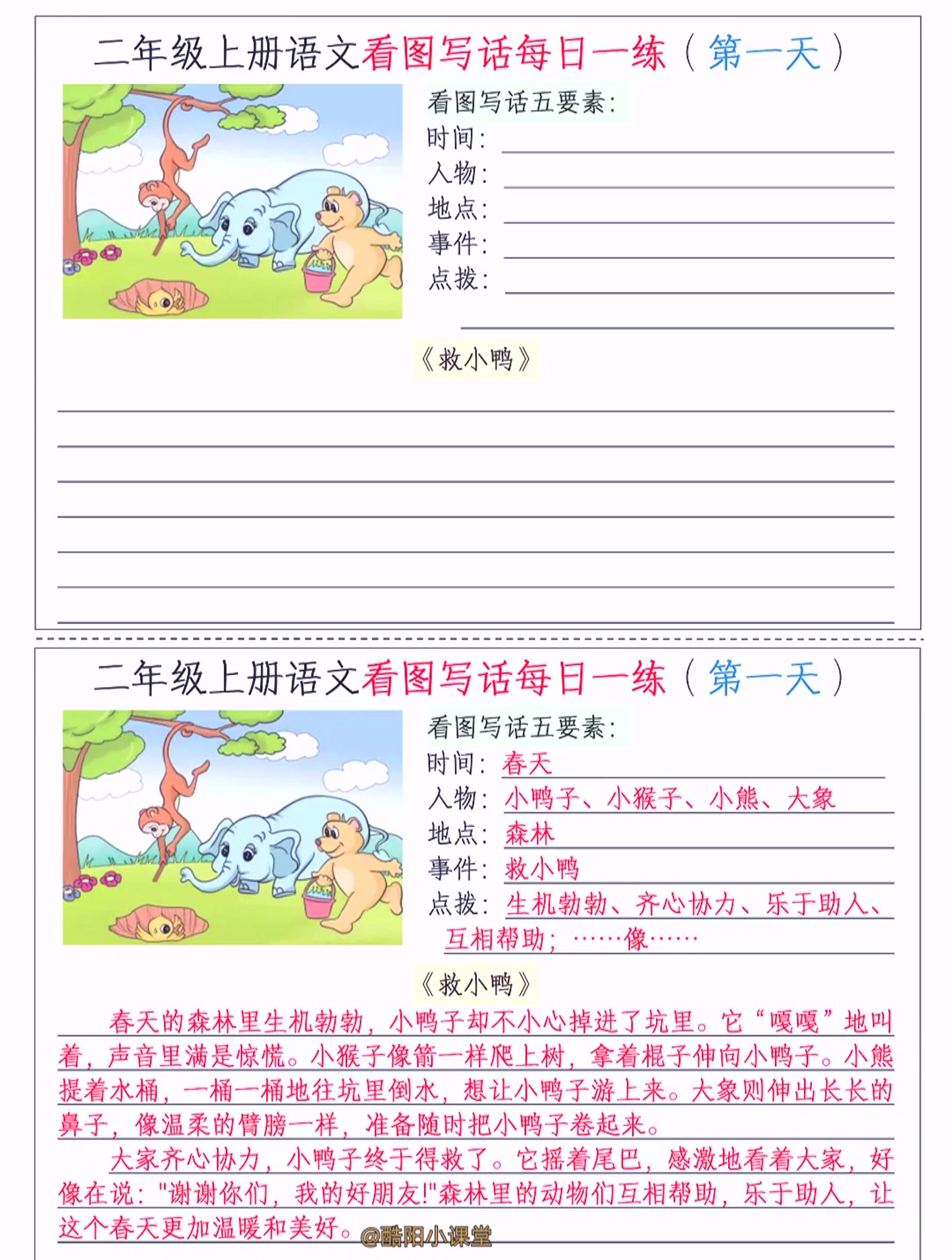 3、开满鲜花的小路习作2020部编版二年级语文寒假看图写话范文汇总,给孩子写作收藏部编版二年级下册类文阅读练习50;孩子在仿写范文的时候,家长要与孩子一起分析范文的立意,还要 部编语文下册12年级看图写话+36年级同步作文高清PDF,可;“小明真是一个听话的好孩子”05范文春天来了春天来了,万物都恢复了生机,到处都是一片鸟语花香小草偷偷地从土里伸出头;看图写话是小学语文写作的基础功底,王老师今天给同学们准备了小学二年级语文看图写话20篇配范文,给孩子期中练习!1爱。