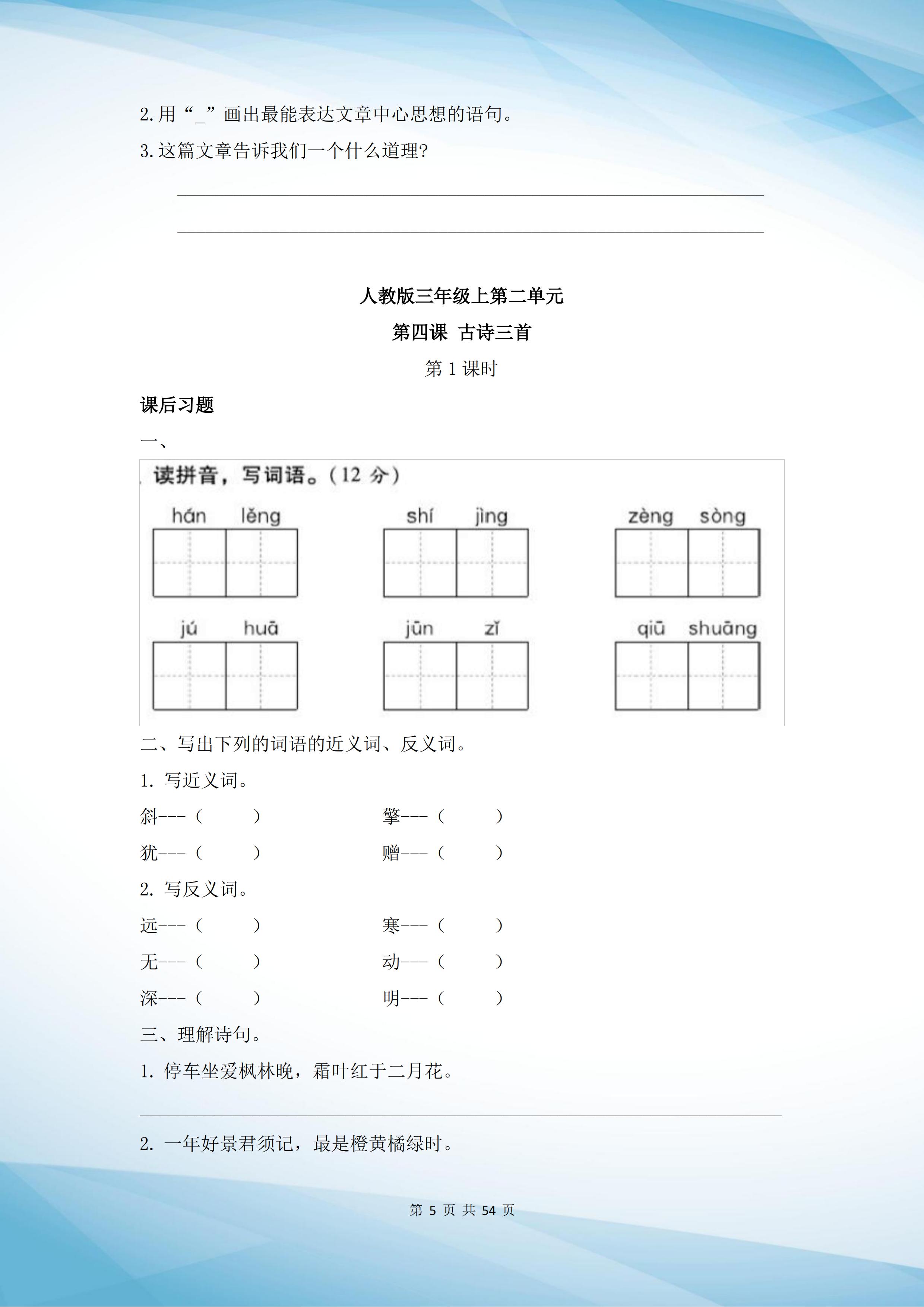3、简介本专题与教材同步,每一课配上针对性练习,让学生充分吸收和巩固 人教版图片版,含答案精品套装资料下载,学科网将定期更新小学资料套。