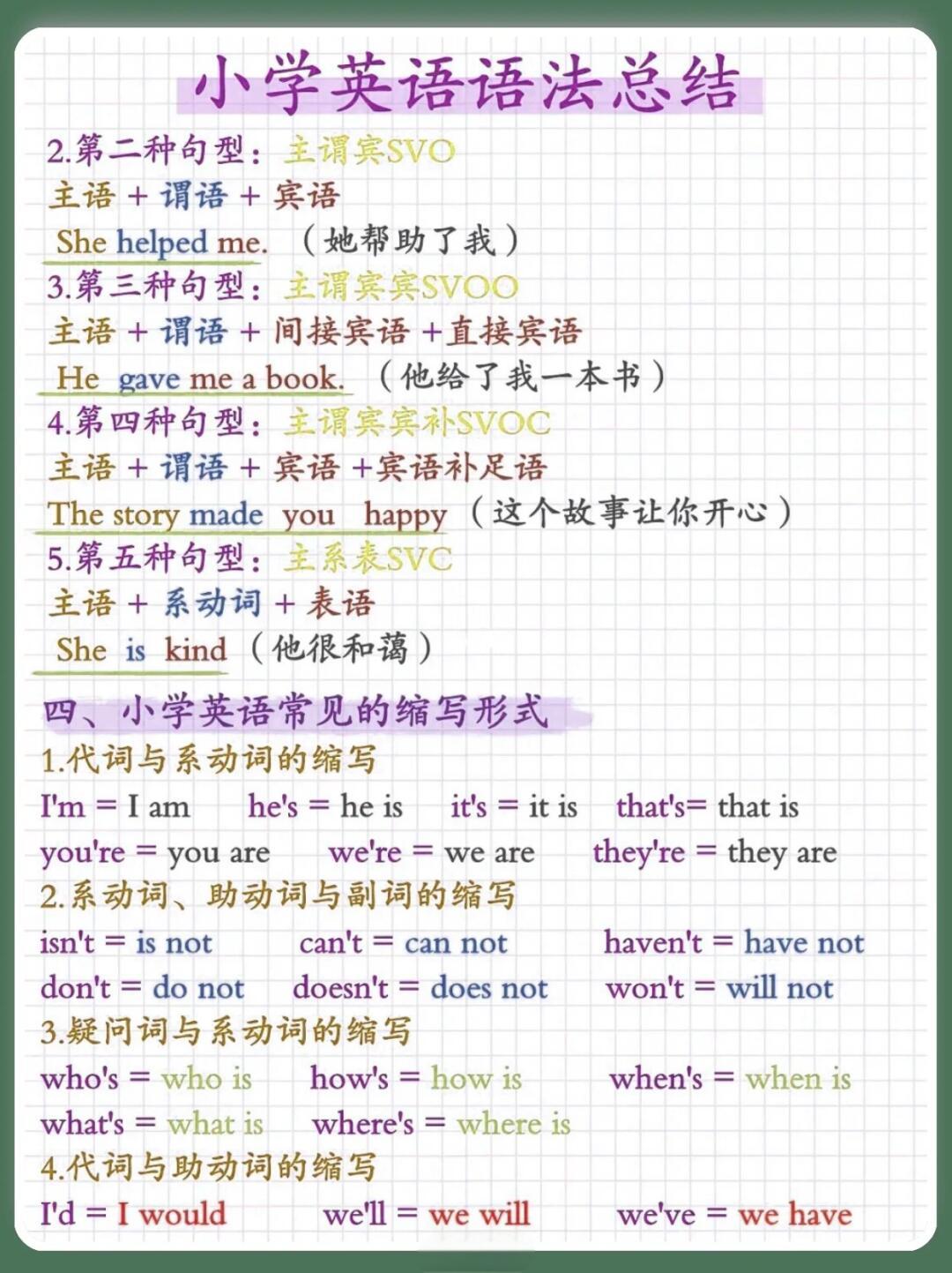 今天小苏老师特意为大家整理了 小学阶段的语法 ,值得为孩子打印一份 希望这些内容,对提高孩子英语成绩起到重大帮助。