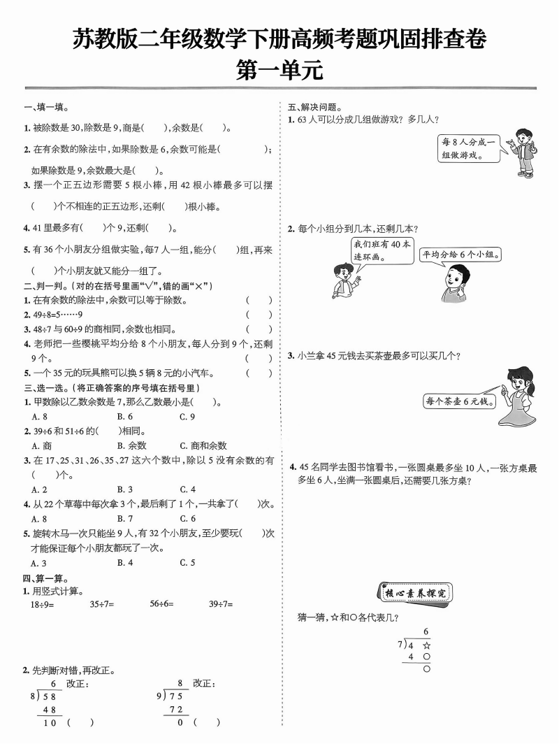 25秋一年级上册苏教版数学周周练周末核心考点专题精练附答案,电子版可打印每天持续分享更多优质学习资料以下为部分截。