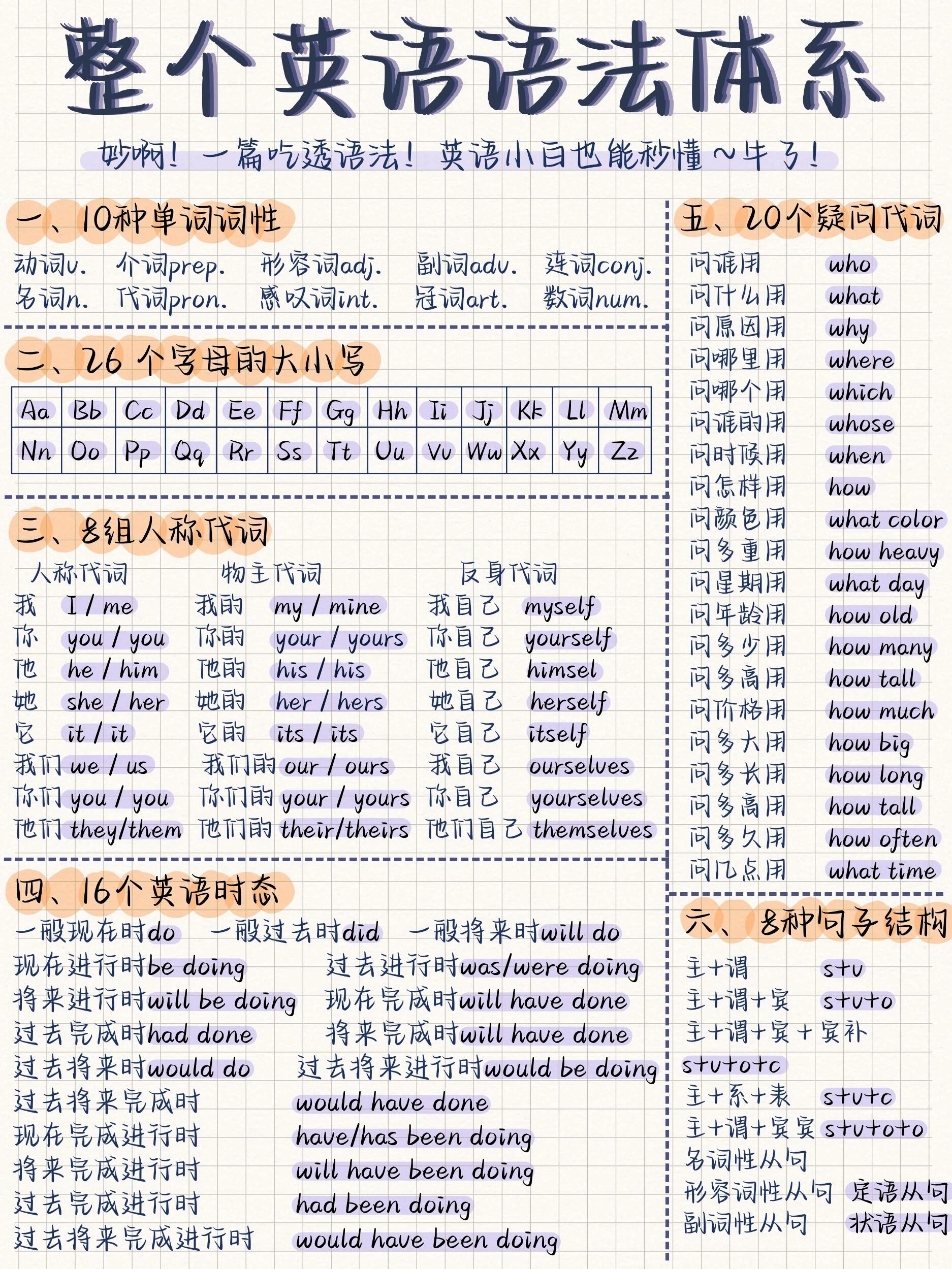 2、今天,我整理了小学阶段最核心最常考的英语语法知识点,从基础概念到实例解析,帮孩子理清思路巩固重点,轻松攻克语法难关。
