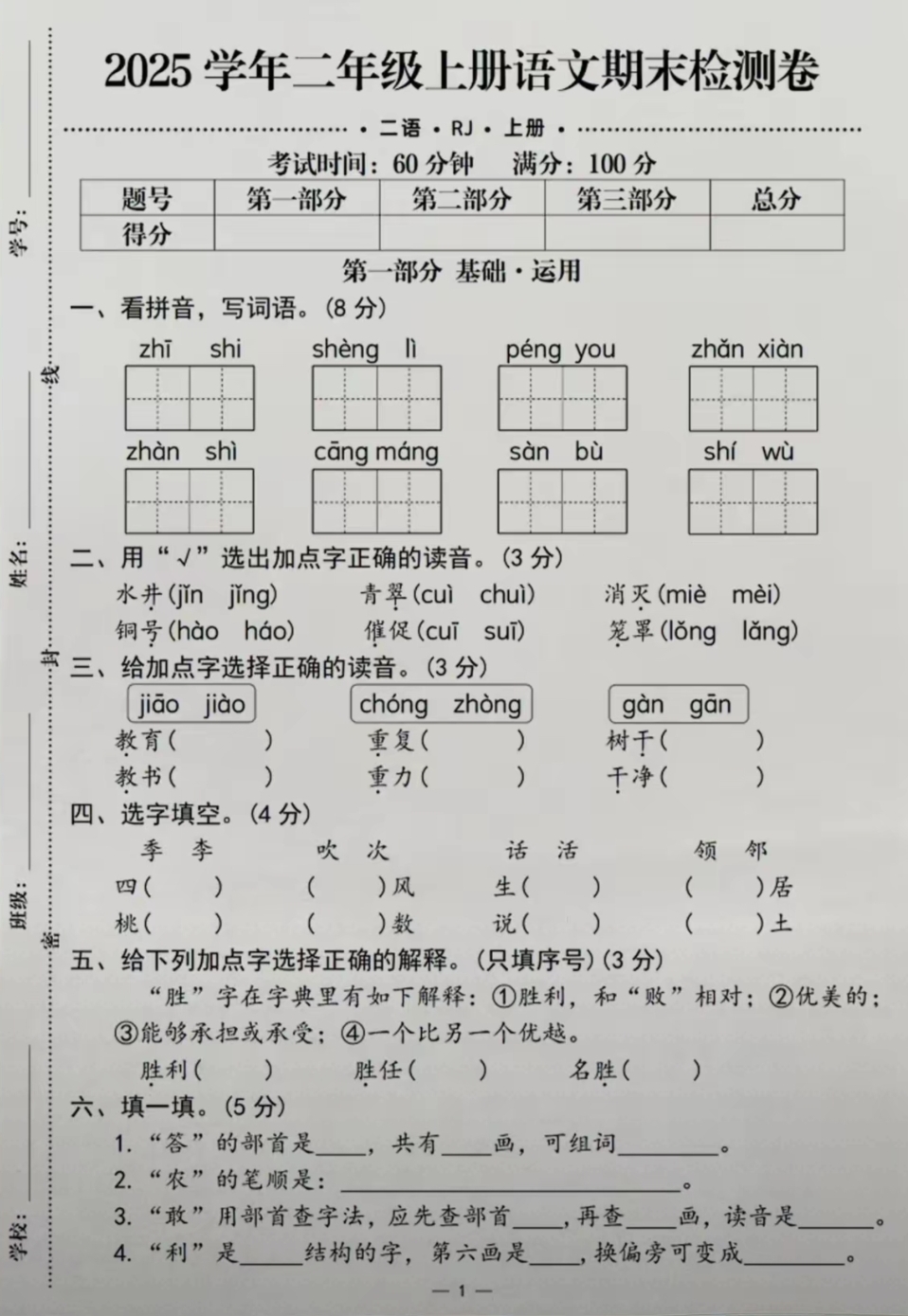 2二年级 1复习内容1夯实语文基础知识,加强看拼音写词语和 紧扣课后练习和综合复习,进行针对性强的查漏补缺的复习工作。