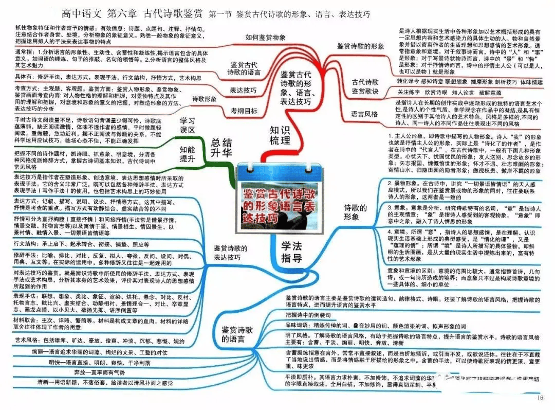 4、如果借助思维导图的梳理,古诗词“表达技巧”的知识网络就会更清晰明了,如下图这样的古诗词“表达技巧”思维导图分类清晰。