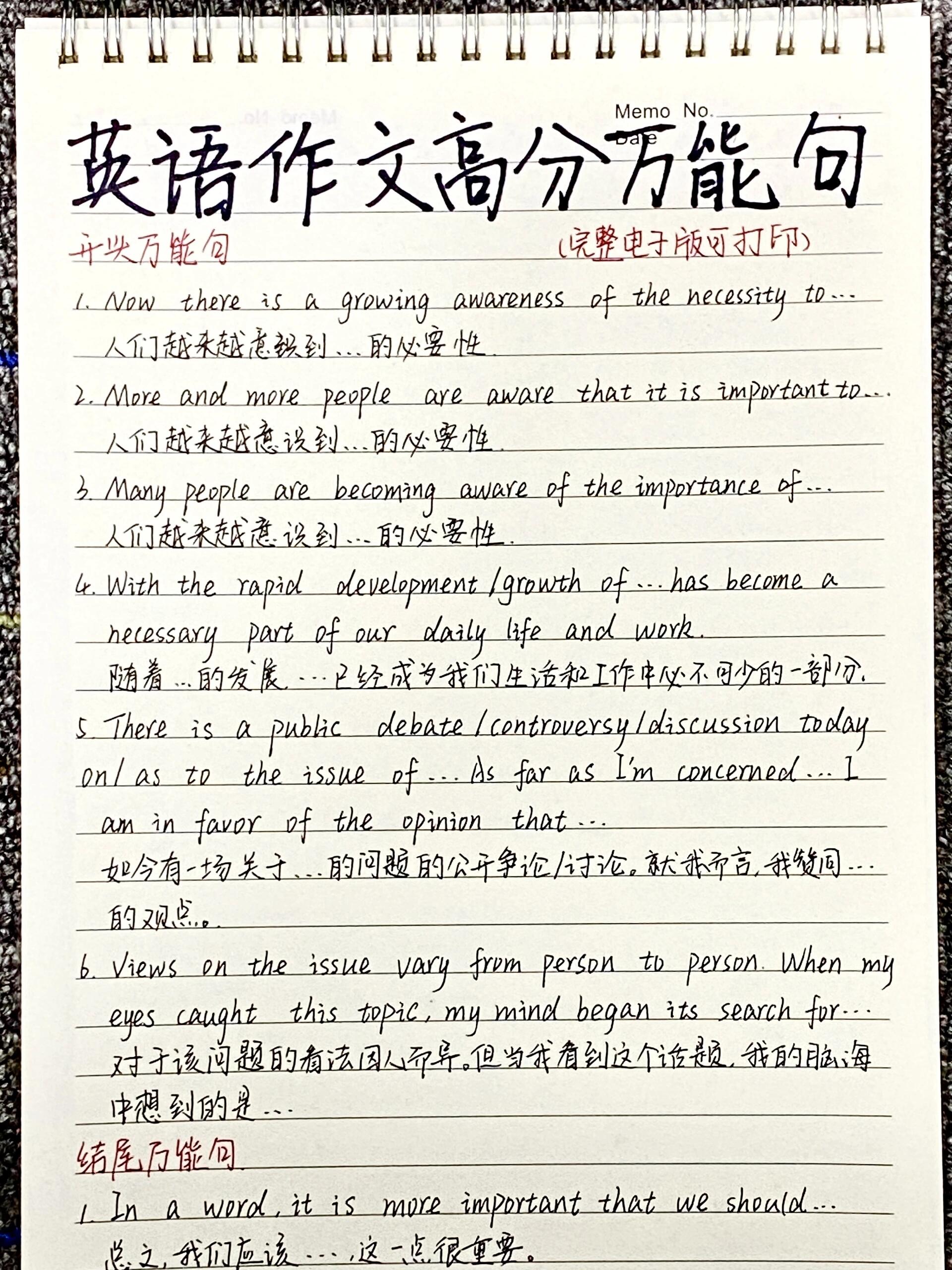 今天为同学们整理好的初中英语各类型作文万能模板,大家在考试时可以直接套用 万能模板阐述主题题型 要求从一句话或一个主;很多学生和家长就发现,作文提分很困难,即使经过很多练习分数依然上不去以下汇总了“初中英语写作万能模板”考试直接套用。