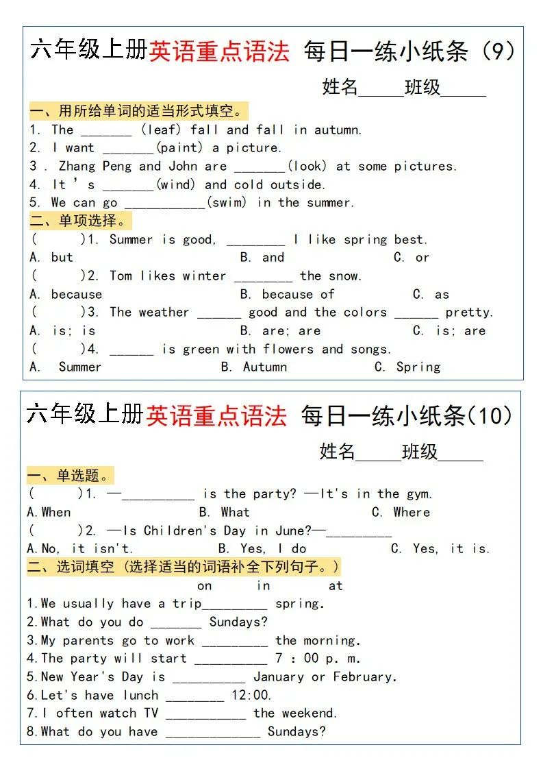 今日分享2025年秋新六年级上册英语每日一练小纸条共17页电子版可打印这份每日一练小纸条覆盖4个核心单元,从“问路指路;老师特意为大家整理了一份超火的小学英语每日一练小纸条, 电子版可打印2025年秋四年级上册语文全册课后小练笔练。