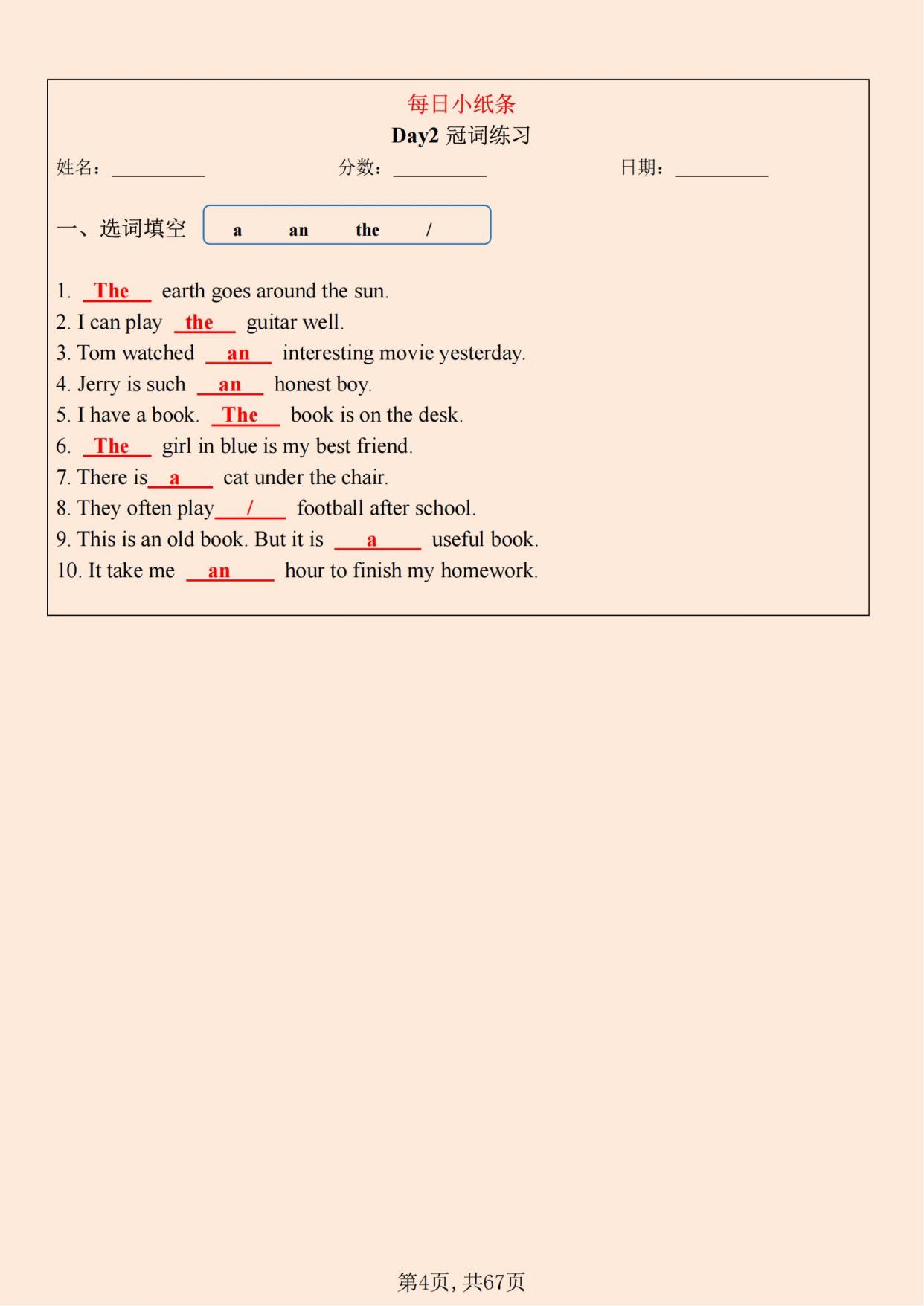 3、最新版四年级上册英语重点语法每日一练纸条附答案,可下载打印提供电子版,支持打印和下载温馨提示因篇幅有限。