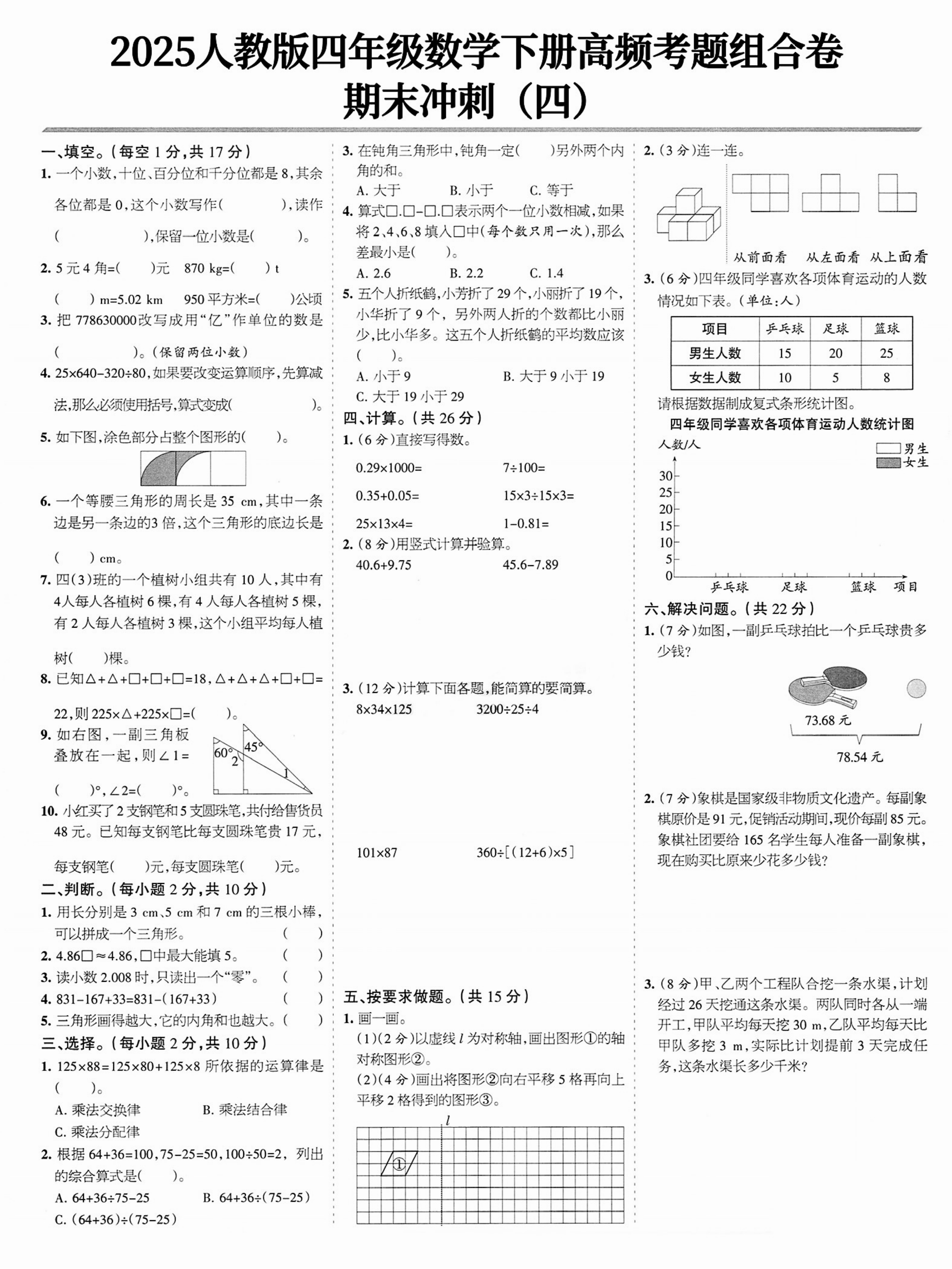 1、今天王老师给同学们准备了期末冲刺!重点小学四年级第一学期数学期末检测卷有答案,家长们可以给孩子收藏一份!期末冲刺。