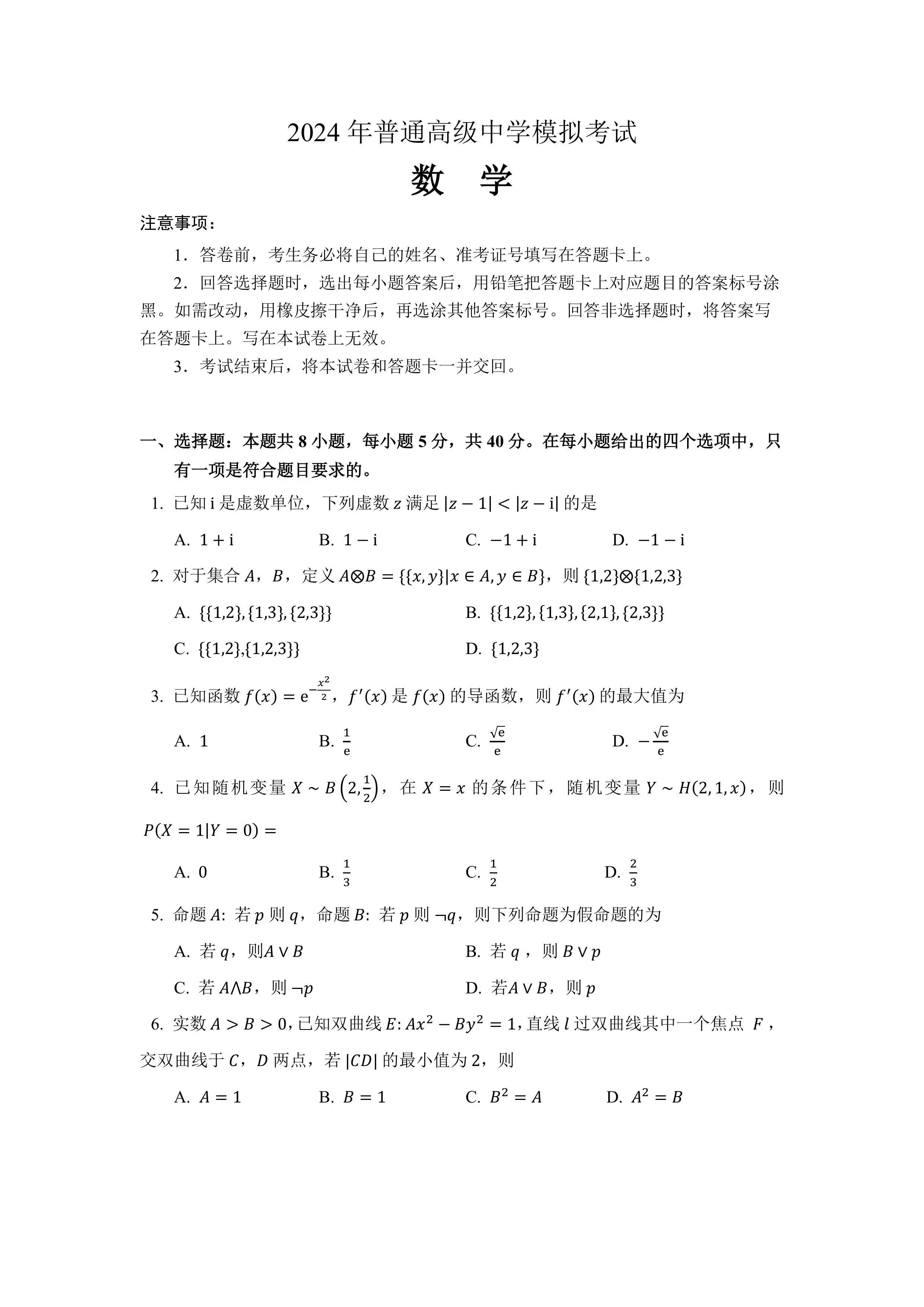 2、高三数学模拟试卷满分150分选择题每小题5分,共40分已知全集U=1,2,3,4,5,集合M=1,2,3,N=3,4,5,则MnCuN=234A1,2B4,5一选择。