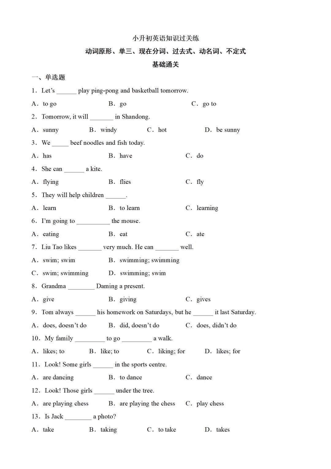 2、回复“小升初答案” 获取本套模拟题答案 找出划线部分发音不同的单词 5%1 A look B cool C school D zoo2 A mine B。