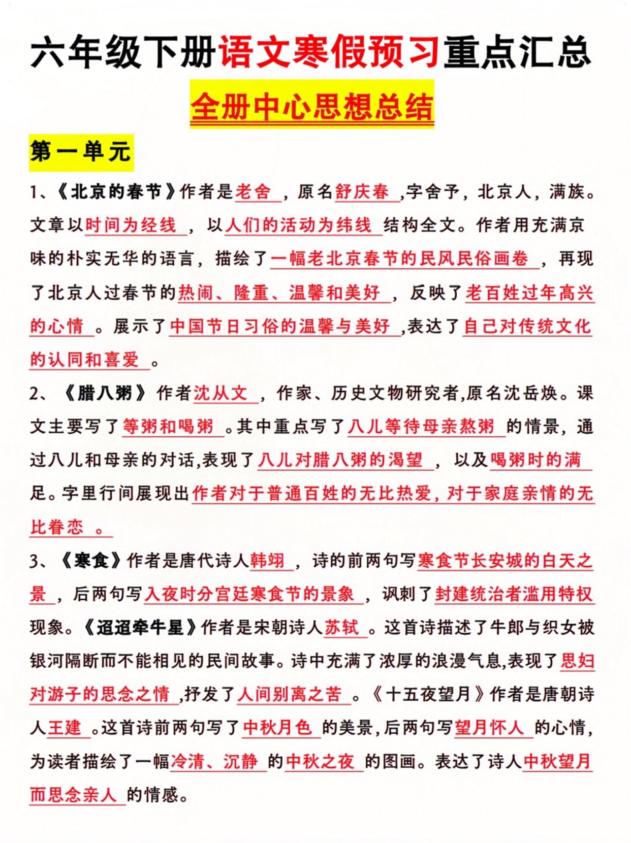 5、16年级下册更新2025春最新版,预习复习必备!小学语文 一篇全涵盖!小学语文16年级必背词句古诗日积月累汇。
