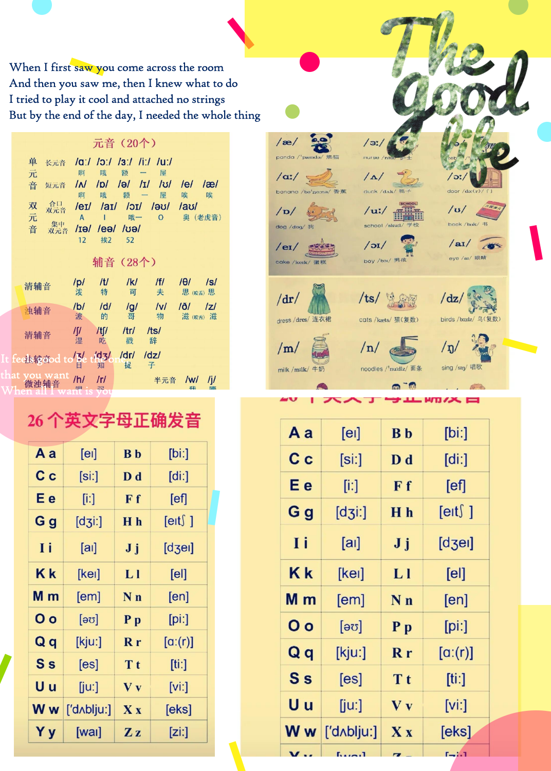 26个英语字母在单词中的读音用歌曲形式唱出来,帮助孩子直接认 另一种就是把下列以儿歌的形式给孩子说出来,GO FOR IT!只。