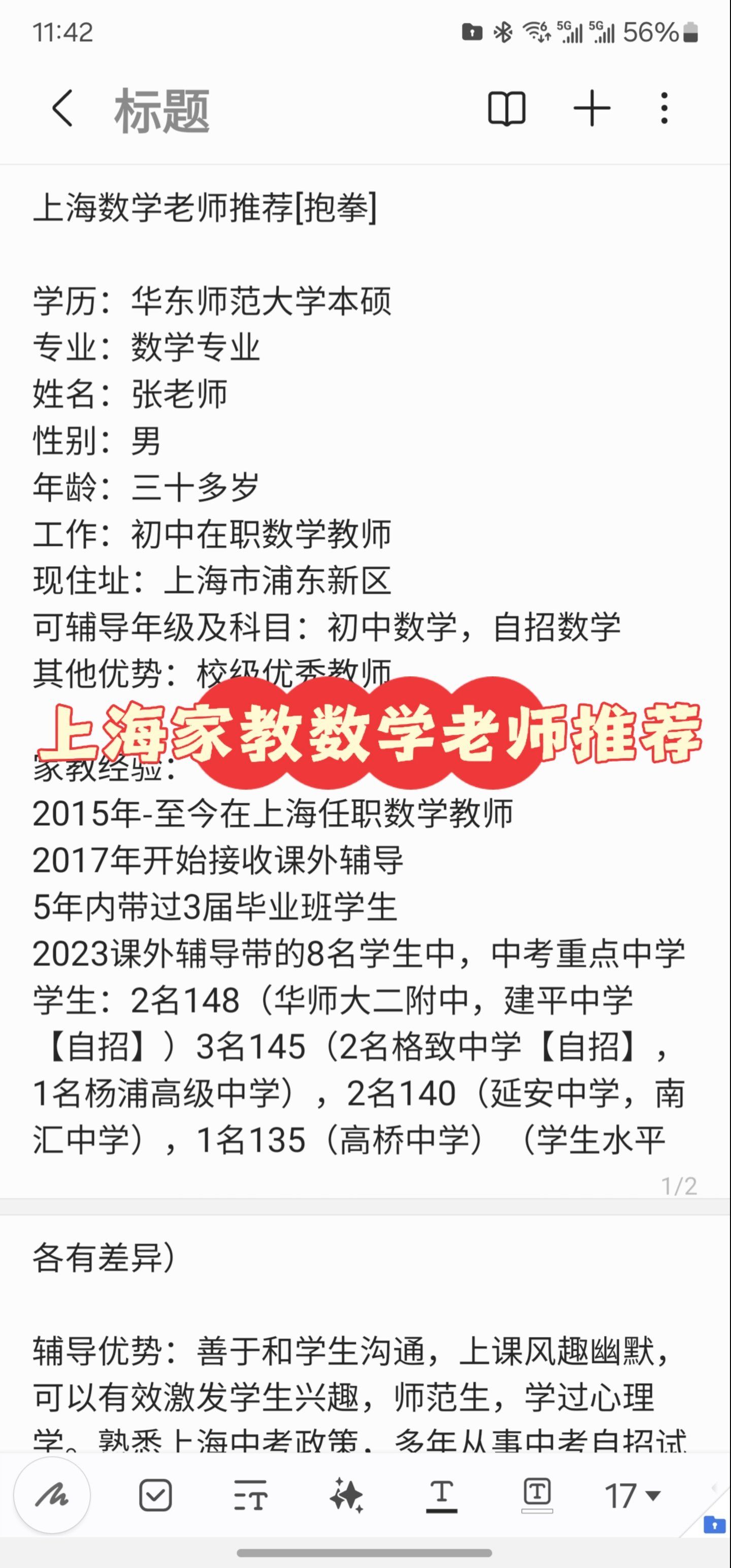 担任数学补习班老师,曾教过四年级五年级奥数,初一初二数学补 初高中文科,擅长语文英语小学全科等等基本情况高考语文。