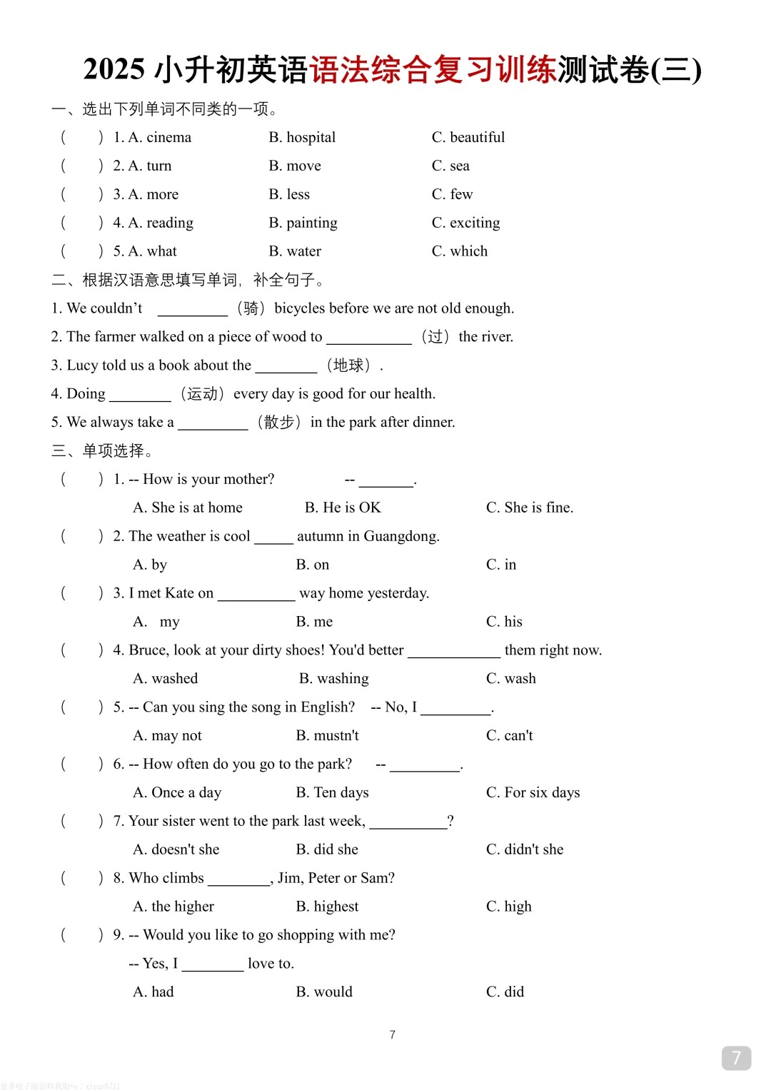 5、英语学习今天学豆为各位家长和学生们制作了一份小升初英语专项训练专题有时间做一做,暂时没时间呢就先收藏一下,等放学或者。