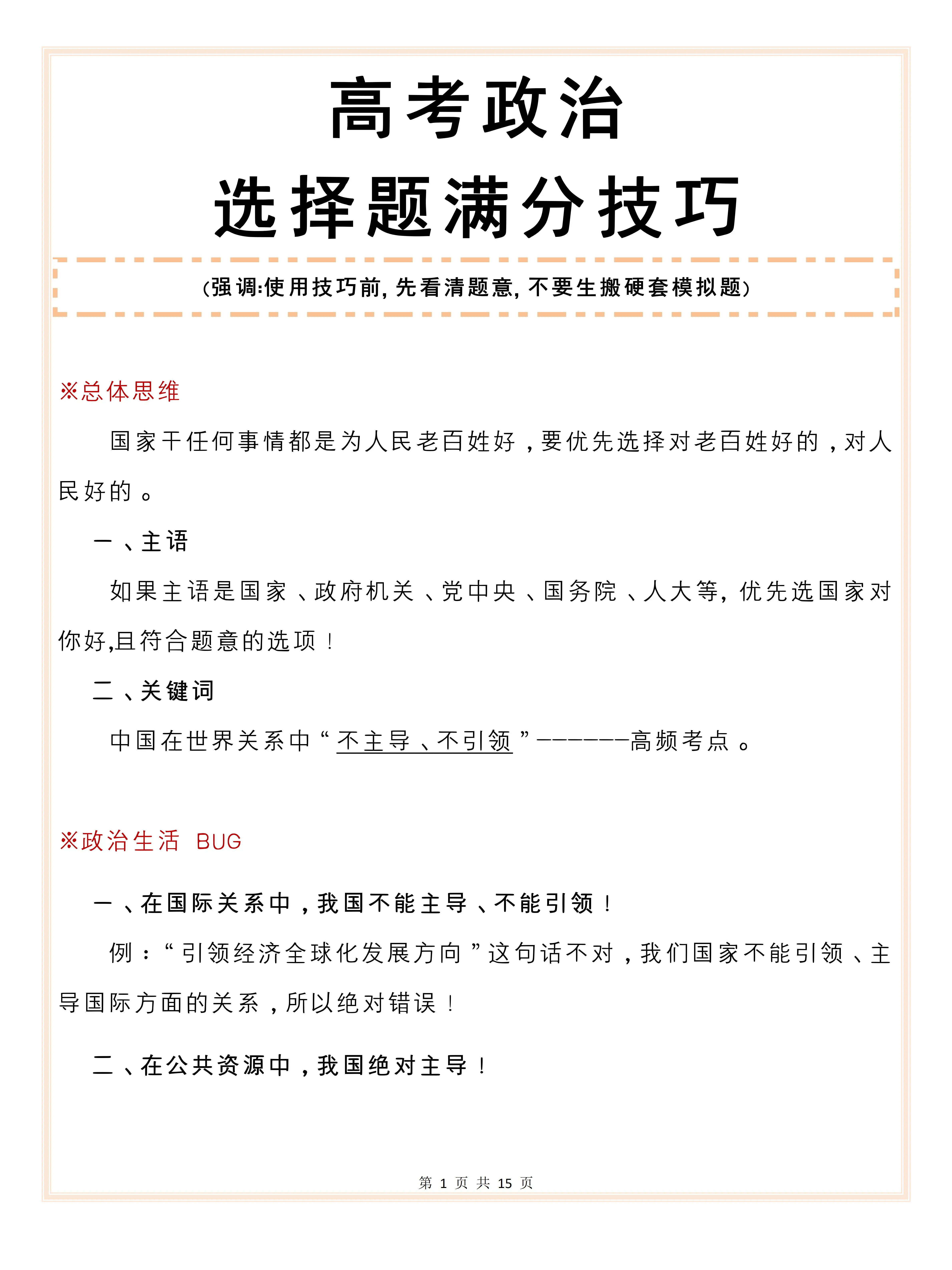 高考政治选择题答题技巧用好排除法概要间心态上都失去把握使得整场考试感觉像爬山过岭,磕磕绊绊,身不由己不如从较好入手的政治试题做起。