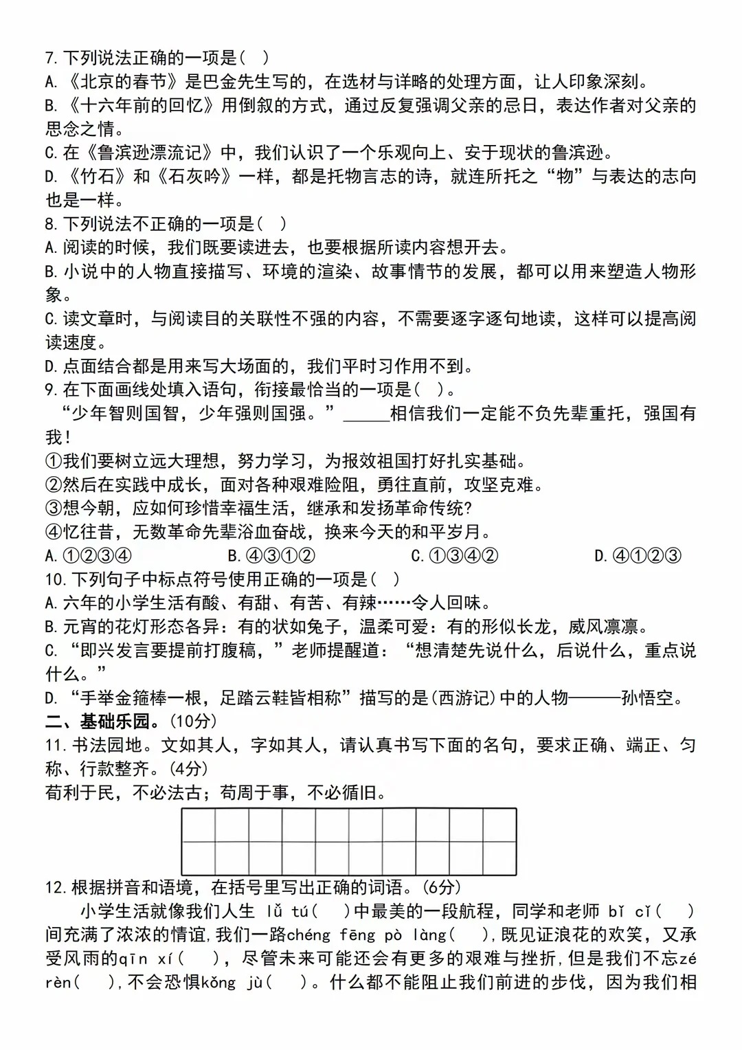 2023年沈阳市铁西区小升初语文试卷参考答案与试题解析一选 我详细介绍了我的生活和工作情况,也坦诚地承认了一些弱点和缺。